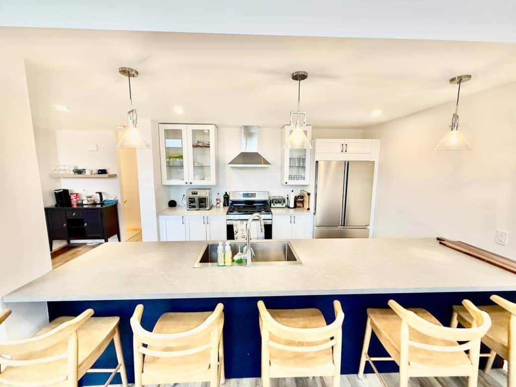 With multiple bedrooms, including a fun bunk room for kids, the cottage comfortably accommodates families or small groups. The lower level features a cozy lounge and games area, perfect for movie nights or rainy-day relaxation.